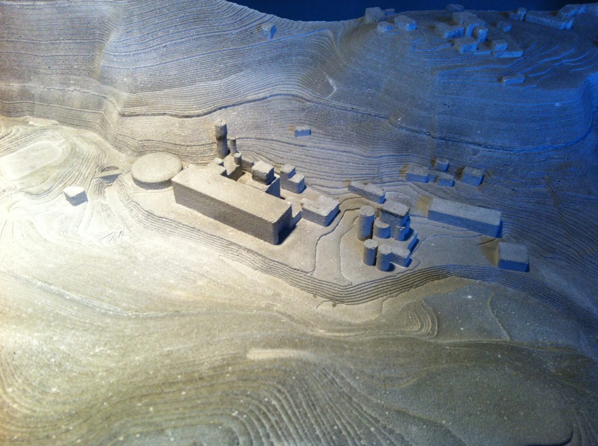Modello architettura scala 1:1000 del Museo del cemento. Il modello è stato realizzato partendo da un modello in 3D per la realizzazione del cassero in negativo nel quale è stato colato il cemento.