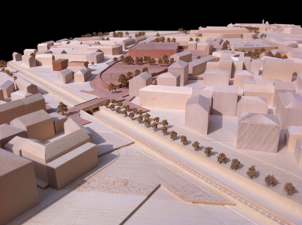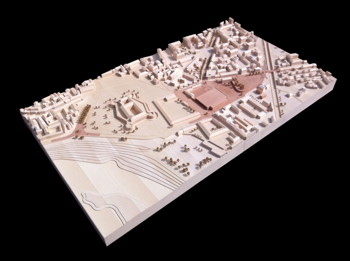 Modello architettura in scala 1:500 realizzato in legno di tiglio per il contesto e pero per l’intervento di riqualificazione urbana del centro di Casale Monferrato.